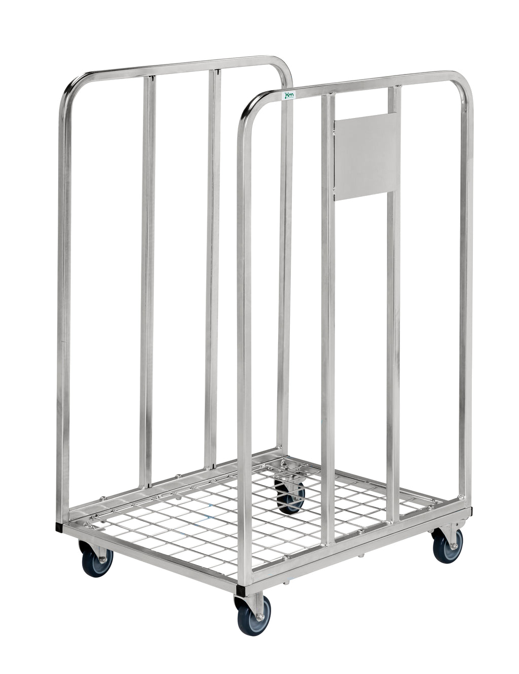 Carrelli portatutto piccoli e flessibili elettro galvanizzati su 2 lati per uffici con rete metallica da 50 mm sul fondo. 4 ruote girevoli da 100 mm 2 delle quali con freni. Ideale per l’immagazzinamento ed il trasporto di scatole di cartone / cartoncino ripiegati.