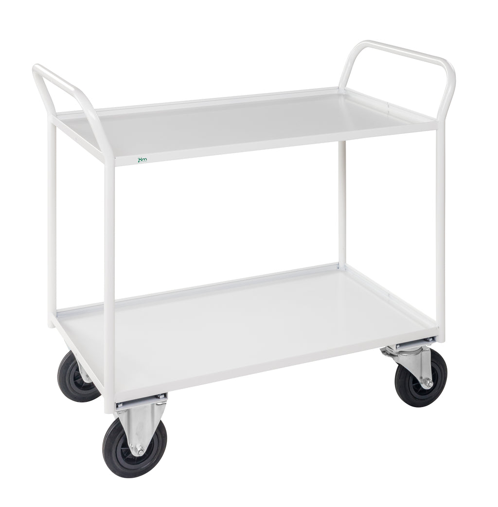 Carrello robusto completamente saldato in lamiera di metallo con bordo, 2 ripiani. Ideale per oggetti pesanti.