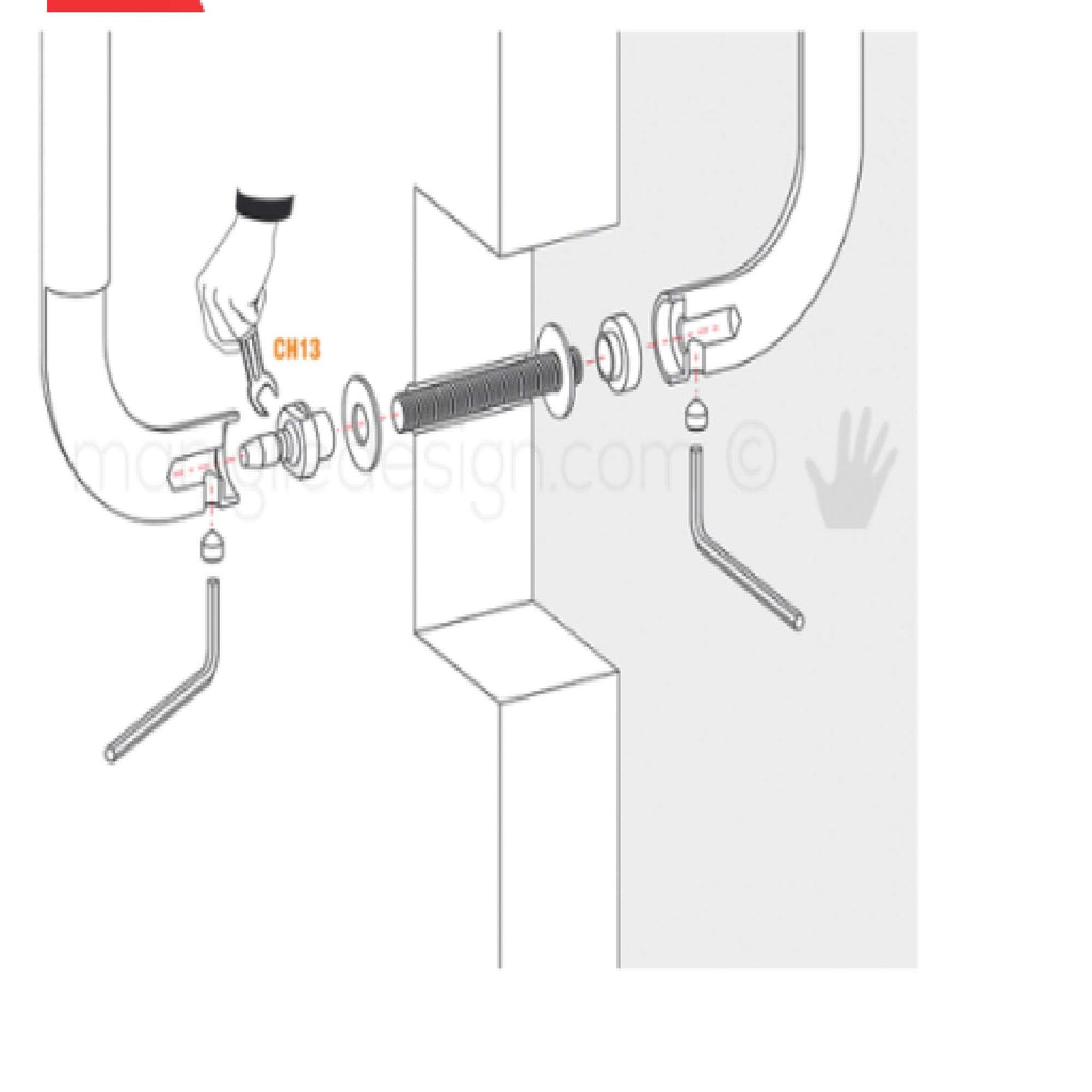 Kit di fissaggio PA passante accoppiato per maniglioni Colombo Design per porte legno, blindate, alluminio, PVC, vetro.
