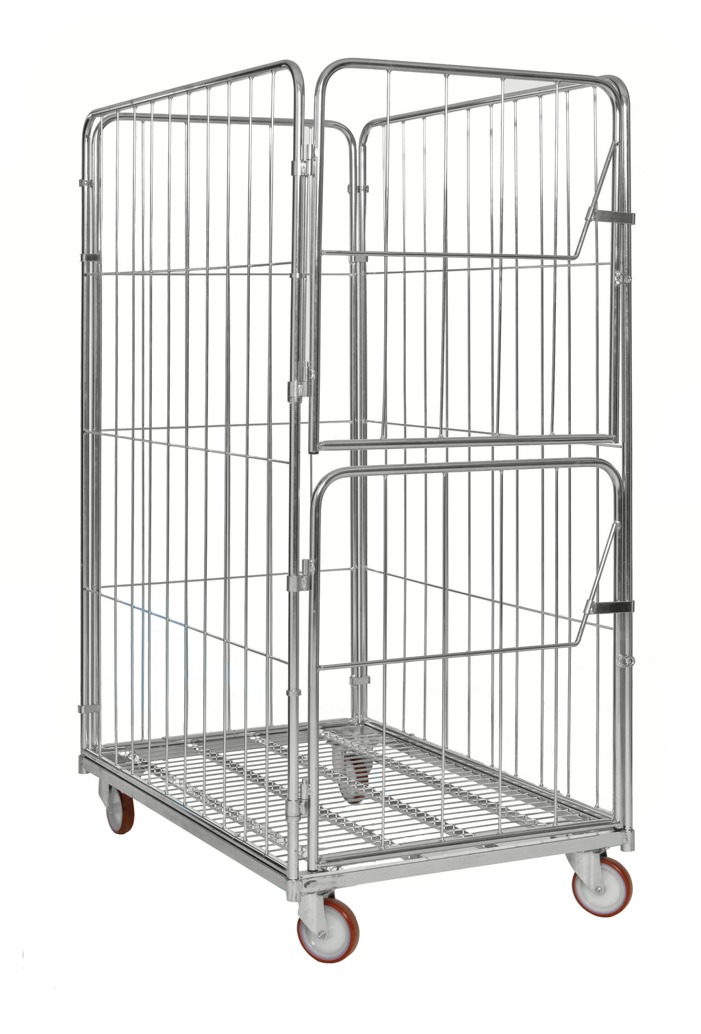 Roll container con 4 sponde e 2 porte. Montato con viti per donare una maggiore stabilità.