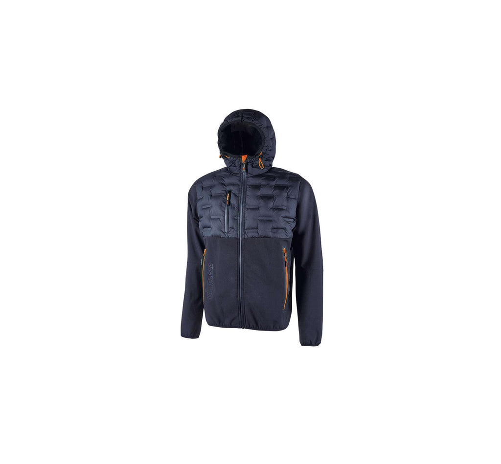 Giacca ibrida idrorepellente traspirante e antivento estremamente versatile e ideale per chi svolge lavori dinamici in ambienti freddi o medio temperati senza però rinunciare alla libertà di movimento. Chiusura centrale con zip impermeabile. Cappuccio fisso e regolabile, polsini elasticizzati.
